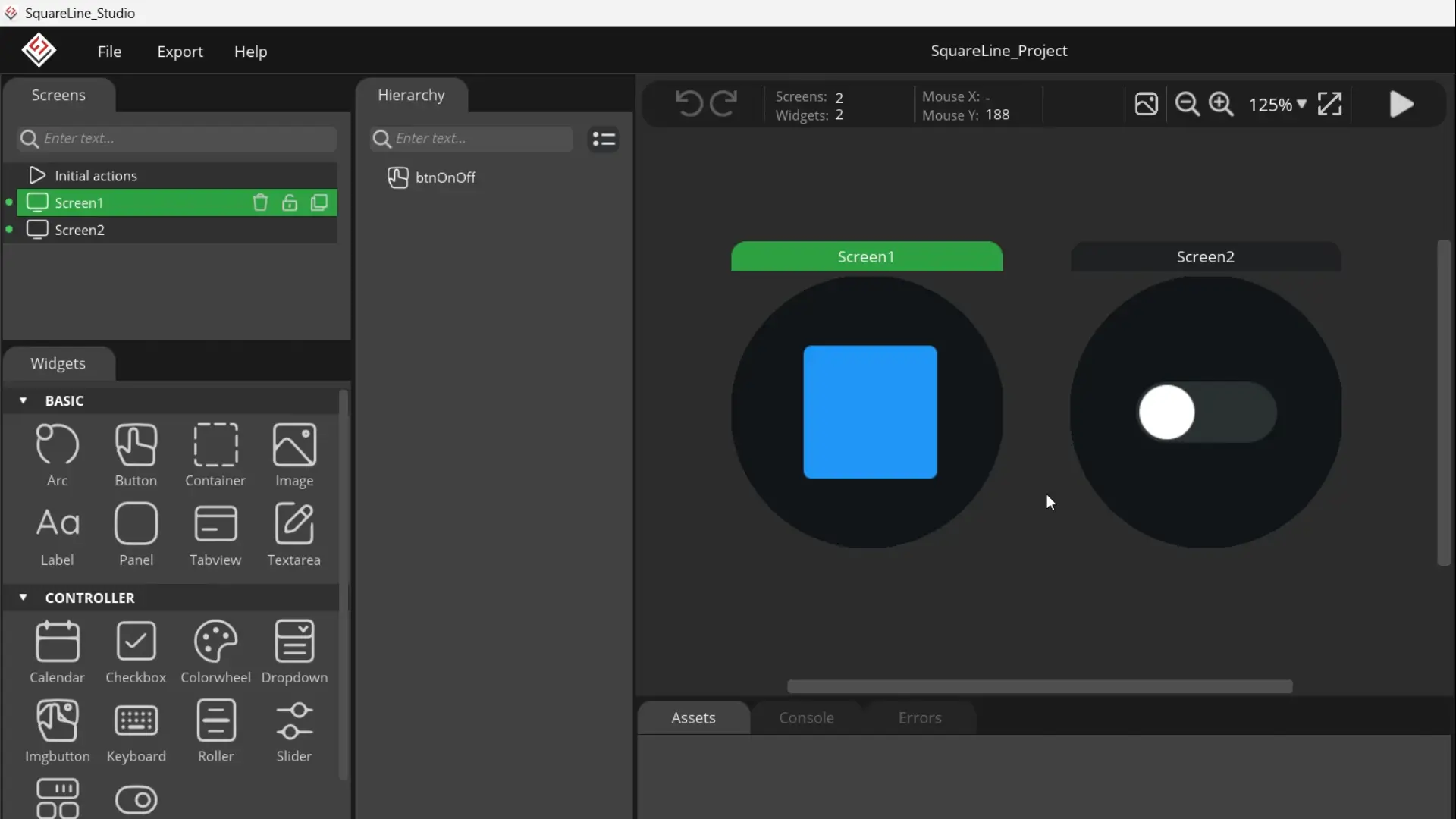 On Screen 1, we have a button, and on Screen 2, we have a switch.
